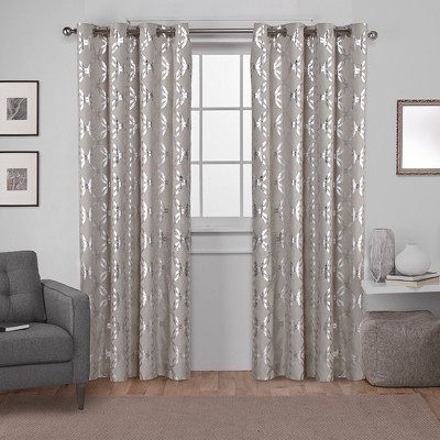 Set of 2 96"x54 Panza Sheer Linen Printed Metallic Geometric Grommet Top Window Curtain Panel White Silver Print - Exclusive Home