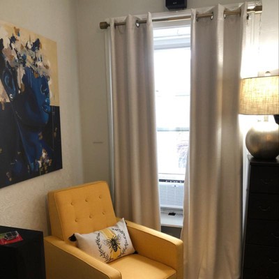 [This review was collected as part of a promotion.] These curtains were love at first sight! They are beautiful, lined, and total blackout. I needed total blackout curtains because I work the night shift which means that I sleep during the day, when the sun is shining the brightest. Thanks to these curtains I no longer see any light from my windows. I bought a set for my living room as well. The color is neutral and matches all of my furniture. These are worth the investment because they are quality curtains. You definitely get what you pay for and these are incredible.