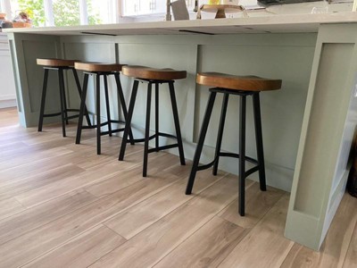 I've been looking for months for the perfect barstools - and I found them! These sturdy barstools are the right height for my tall countertops. They came preassembled but I added felt on the bottom of the feet so as to not scratch my wood floors. Comfort wise they're not something I'd want to sit on for hours on end but I've been using these stools daily and not had an issue with them (I've got arthritis in my lumber area). I like that these don't have a back on them so there isn't a visual obstruction from the kitchen to our living room area (they tuck in under our countertop). They arrived much faster than expected and were a great price. All in all a great find!