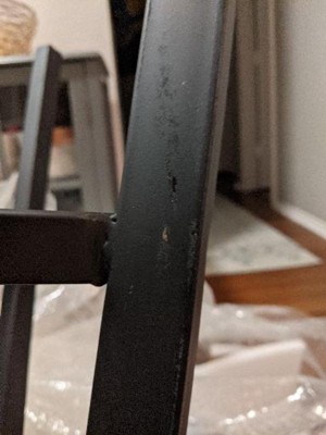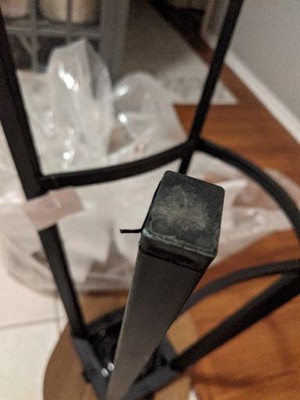 These were packaged very well, but despite the care that went into that, both chairs had noticable marks on the legs. In attempt / hope the marks would wipe off left my hand covered in black spot like debris (assuming it was the powder coating). While wiping the chairs down with wet clothes to clean them (again, brand new out of the package) I noticed a slice of metal sticking out of the bottom. snapping it off still left a jagged edge. I really had high hopes for these and from afar look great, but I will be returning.