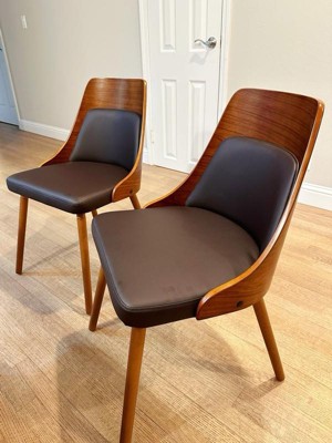 [This review was collected as part of a promotion.] I received a pair of two Anabelle Chairs from Lumisource. Crafted from walnut wood and brown faux leather, the chairs not only exhibit an exquisite aesthetic but also pair well with our dining table. The rich combination of materials enhances the overall appeal, making them a stylish addition to our dining space. The walnut wood is of high quality and looks very durable. The brown faux leather upholstery, aside from its chic appearance, provides a smooth and luxurious feel. The carefully designed seat offer excellent support, allowing for a comfortable and relaxed dining experience.