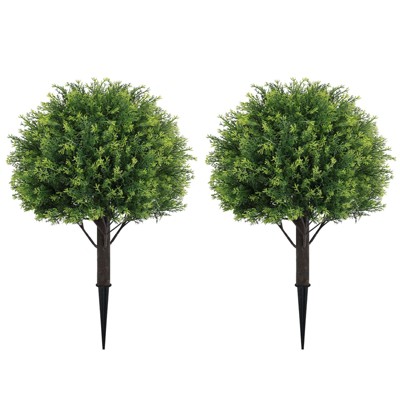 Transform your spaces with this set of two artificial cedar topiary trees, featuring dense, lifelike foliage and a strong trunk for natural charm. Each faux cypress shrub comes potted for instant display and can be easily adjusted for fullness to complement your home, office, or porch. Designed to last, this maintenance-free greenery remains fresh all year, offering beauty indoors or outside.