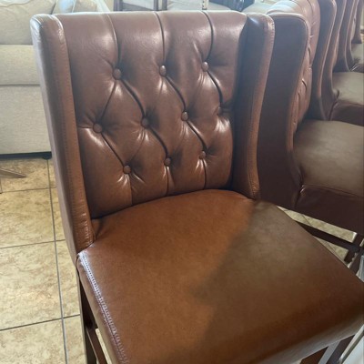 Combine contemporary vibes with classic structure to create the perfect seating arrangement for your home bar. With a refined wood look and delightfully upholstered seating, our barstool set creates an exquisite contemporary appeal that also brings incredible function to your kitchen nook or home bar. The H-frame legs create a durable structure that ensures stability for you and your guests. Finished with classic button tufting and wingback design, this barstool set offers a sophisticated design that enhances the style of any home.