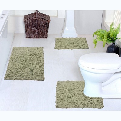 Product Name: Set of 2 Bell Flower Collection Green Cotton Floral Pattern Tufted Bath Rug Set - Home Weavers