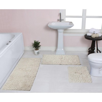 Product Name: Set of 2 Bell Flower Collection Ivory Cotton Floral Pattern Tufted Bath Rug Set - Home Weavers