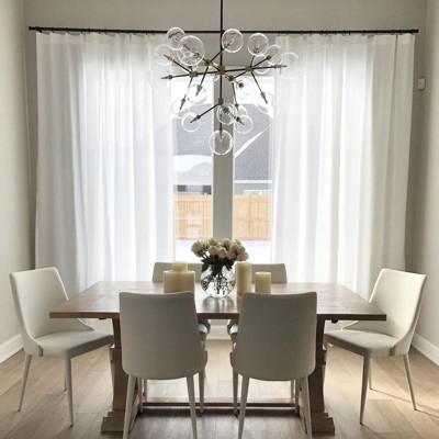I needed 120” light filtering drapes that didn’t break the bank. These work perfect for my space. I bought 4 and sewed 2 and 2 together, cut the tabs and added drapery tape, hooks and rings. The curtains were all the same length so it made for a very simple sewing project. They provide privacy but still let light in - so I’m happy with them!