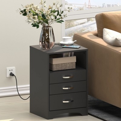 - [ Nightstand with Charging Station ] This is a nightstand with two standard plugs and two USB ports. The power cord is long, which can fully meet your needs. It can charge your mobile phone, computer, game console and other devices at the same time, make your life more convenient.