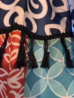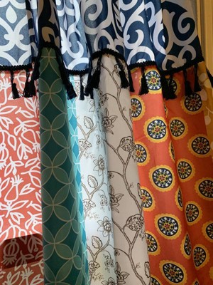Bring bohemian style to your home with the Lush Decor Boho Patch Light Filtering Curtains. Featuring a patchwork style print with columns of colorful floral and geometric patterns, adding brightness and dimension to your space. Tassels run across the top portion of each panel. These light filtering curtains for bedroom provide moderate privacy while helping to filter sunlight, allowing a soft glow to fill the space. Each vertical stripe features a new color story and a different pattern from floral to geometric. these panels would look excellent in a teen's bedroom, a first apartment, a home office, a living room or a guest bedroom. These colorful curtains are crafted from a 100% polyester fabric and are unlined. Sold as 2 panels, each measuring 45 inches wide by 84 inches long in multiple length options. These drapes offer seamless installation with its 3" back tab rod pocket, allowing you to easily slide it onto your curtain rod, or by using clip rings (not included). Caring for these living room curtains are easy, simply machine wash cold on the gentle cycle and tumble dry low. Use a steamer to release wrinkles if needed.