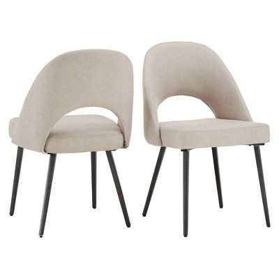 The Sasha dining chair from iNSPIRE Q Modern collection features tapered, angled legs and stylish linen upholstery to coordinate with your mid-century inspired decor. The set of two dining chairs are constructed from durable rubberwood and available in three different fabric colors to fit your style. Create a calm and balanced look in your dining room with these plush barrel back dining chairs.