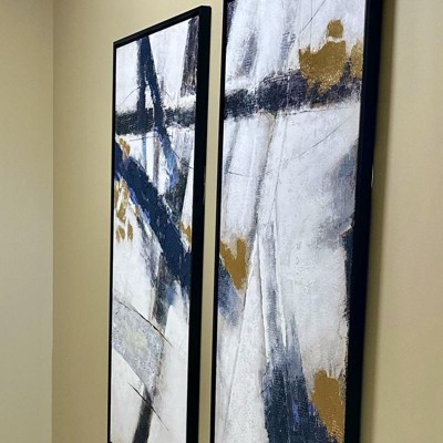 - This canvas framed art wall decor set features two rectangular framed pieces with abstract designs