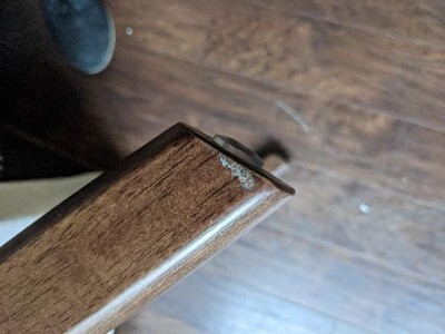 I ordered 2 chairs, one did not come with enough screws to assemble, 2 of the screws did not line up with the chair, so I am having to make new holes to support the back of the chair. The 2nd chair is so wonky, I'm not sure how we are going to keep it from basically being a rocking chair. giving it 2 stars because they look nice from a distance. Both chairs already had scuff marks on the bottom of the legs.