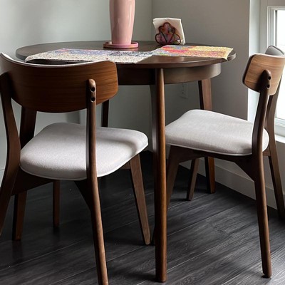 Love these chairs! Extremely comfortable and easy to put together. Matches well with our table.