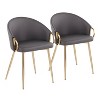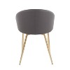 Chic modern style shines bright with the unique design of the Claire Chair by LumiSource. With a rounded low backrest and sleek gold or chrome frame finish, it's the perfect piece for your contemporary dining area. The comfy seat is perfect for a quick breakfast or a family game night. The Claire Chair is available in lush velvet or faux leather upholstery.