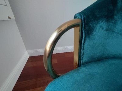 The emerald green is a great color and looks rich and luxurious with the gold accent. I really liked the design concept but the execution was off. the handles are not protected well and came with scratches. The legs require assembly (easy) but some of the screws weren't long enough (about 1.8-2.0 in, but really need 2.5 in). Lastly, they are 29" tall. Would like the back to be slightly higher, like 32". Will be returning these to Target.