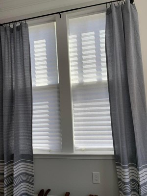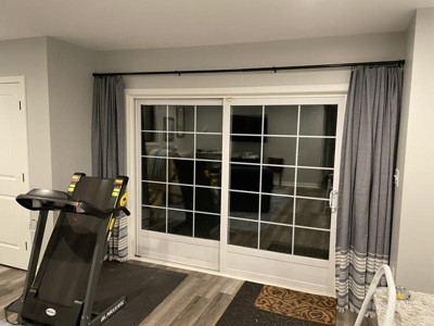 These look great in front of our french doors. The grey color does have a slight blue to it, but I like it better than what the pictures show. Great product, especially for the price!
