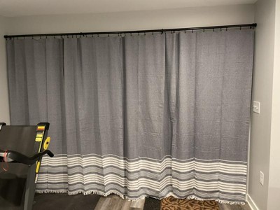 These curtains are lovely. They are just a nice chambray blue and the fringe adds a nice touch. I used curtain rings and they hang beautifully