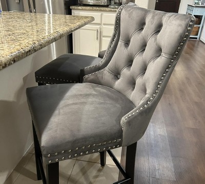 Set of 2 Counter Stools with Tufted Back, Seat Height 26.3 in, Nailhead Trim, Wood Legs, Beige Velvet Bar Chairs for Kitchen Island - Panipeachy