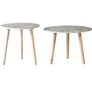 The Design Add these nature inspired side tables to a space that craves a big visual impact.This set of two MDF tables feature painted cherry blossom tops.The nature inspired set includes a small and large table,each with three legs.Accent your living room,foyer,or bedroom with these beauties.