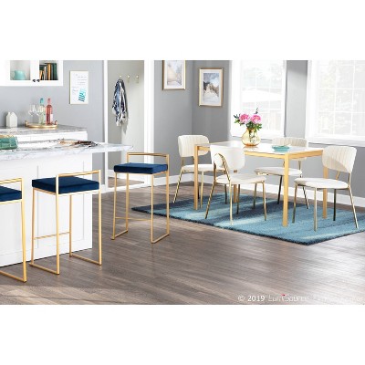 Dress up your modern dining area with the Demi Chair by LumiSource. Designed with style in mind, this glam chair features an open back design, gold metal frame, and a cushioned seat and armrests that let you kick back in style. Available in a variety of colors, the elegant Demi Chair is sure to give your space the modern look you desire.