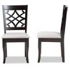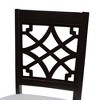 Cultivate an air of elegance in your dining room with the Mael dining chair. Made in Malaysia, the Mael is constructed from solid wood in a dark brown finish that complements the light fabric upholstery. Designed with both comfort and style in mind, the Mael features a plush foam-padded seat, as well as an exquisite cut-out design on its back. Saber legs add a classic, refined touch. Requiring assembly, the Mael dining chair is well suited for both casual and formal occasions.