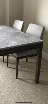 These chairs look great and were exactly what we wanted in our dining room. However, they are pretty uncomfortable. Sometimes when I sit down in them they creak and I wonder if they will give out in a year or so. They feel like sitting on cardboard