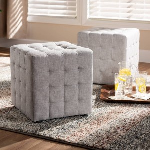 Set of 2 Elladio Cube Ottoman Set Grayish Beige - Baxton Studio: Footstool, No Assembly Required