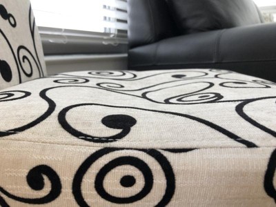 • Upholstered in a black and cream patterned fabric