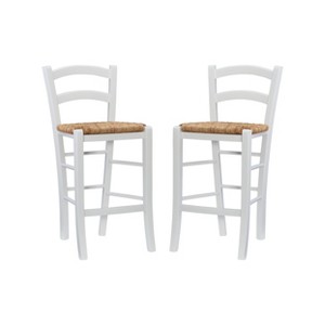 Transform your kitchen or entertainment space with the Emilo 24.4" White Solid Wood Counter Stools – a harmonious blend of traditional farmhouse charm and contemporary sophistication. This set of two stools, arriving fully assembled, offers not only convenience but also a touch of elegance. Crafted with solid beechwood, these stools guarantee stability and durability, ensuring they withstand the test of time. The classic ladder back design evokes a sense of tradition, creating a warm and inviting atmosphere in any room. The natural handwoven rush seats add a modern farmhouse twist, making these stools the perfect addition to counters ranging from 35" to 39" high.