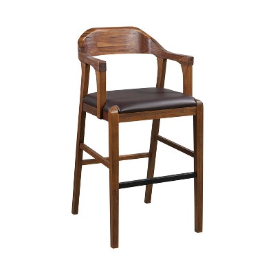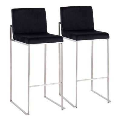 High design meets everyday casual. This handsome bar chair with its slim profile pulls up perfectly to the bar. Its super comfortable curved seat is covered in black faux leather with dramatic stitching. Brushed Stainless Steel legs are complete with protective plastic feet to keep your floors scratch-free.