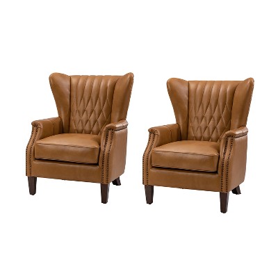 Set of 2 Enrique Genuine Leather Armchair with Tufted Back| ART OF LIVING DESIGNS