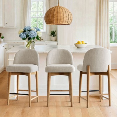 The wide welcoming seat of the LumiSource Fabrizzi Fixed-Height Counter Stool beckons for one to sit and unwind for a while. A scooped, contoured seat and curved back add to its modern yet chic design. With a swivel base and stylish upholstery, this is an ideal selection for kitchen seating or a home bar.