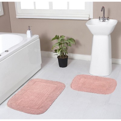 Set of 2 Fantasia Bath Rug Collection Pink Cotton Shaggy Pattern Tufted Bath Rug Set - Home Weavers