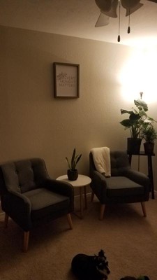 I’ve waited just over 7 months to write a review of the chairs. I bought the gray chairs back in April when they were on sale. They have held up great— even with an 80 pound dog that likes to curl up in them and a toddler who isn’t the nicest to furniture. They are perfect for our sitting area in the front room. Every guest we’ve had over compliments them. I thought they would be firm and not that comfortable by the way they looked online but they’re surprisingly comfortable! Just be aware they are on the smaller end but not too small! We’ve had people of all sizes in them and not complain.