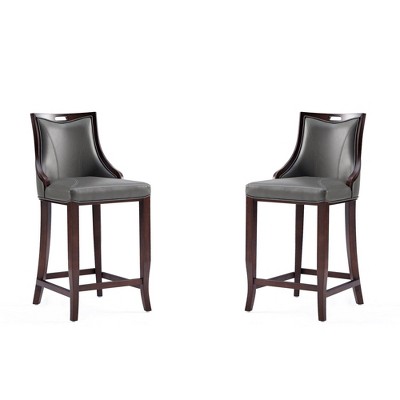 Set of 2 Fifth Avenue Counter Height Barstools: Beech Wood, Faux Leather, Light Gray - Manhattan Comfort