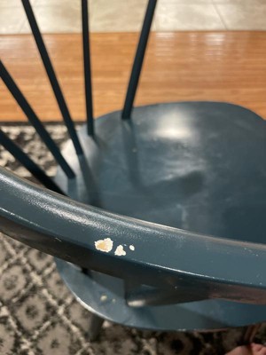 Arrived with chips in both chairs which continues to peel the paint. The midnight blue is also much darker than what is pictured. They're cute and sturdy otherwise.