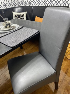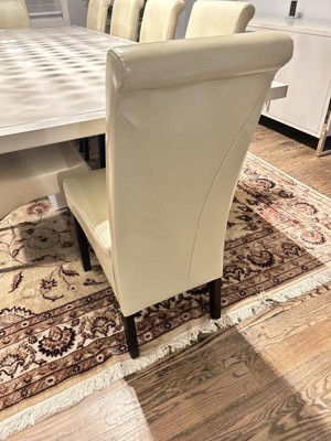 WyndenHall Set of 2 Franklin Parson Faux Leather Dining Chairs Satin Cream: Upholstered, Wood Legs, High-Density Foam