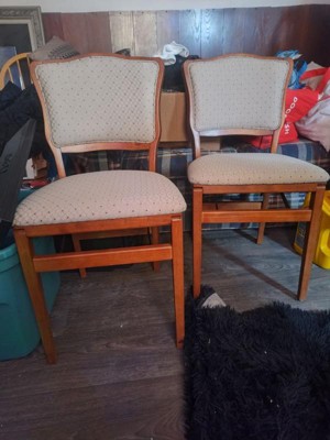 Stakmore Set of 2 French Upholstered Back Folding Chair Cherry Polyester Seat, Wood Frame, Fully Assembled