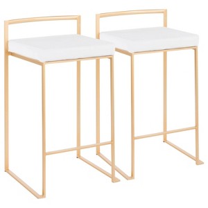 LumiSource Set of 2 Fuji Stackable Barstools White: Velvet Upholstered, Gold Frame