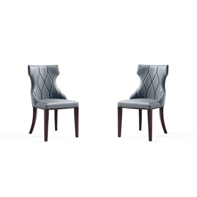 Set of 2 Gansevoort Modern Faux Leather Dining Chairs Pebble Gray - Manhattan Comfort: Beechwood Frame, Foam Cushion