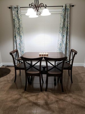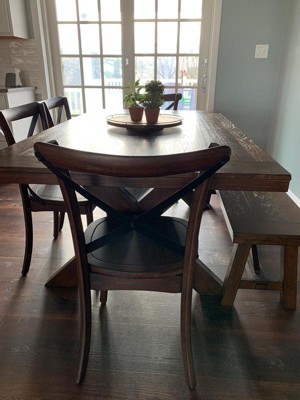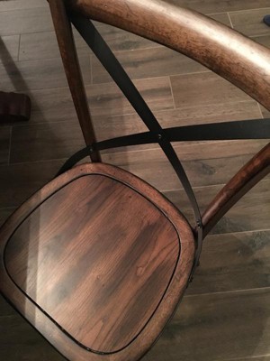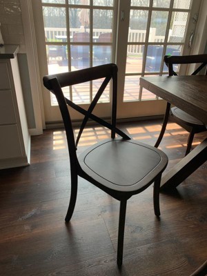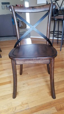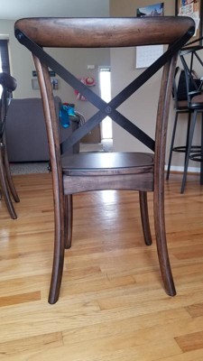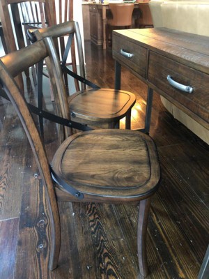 With the distinctive air of a French bistro chair, Kaelyn Side Dining Chairs features a contoured X-shaped back, gently curved legs and a bent top rail. Crafted for longevity and stability, these dining room chairs fit easily with a variety of décor styles. The beautiful dark oak and black finish add some depth to the chairs.