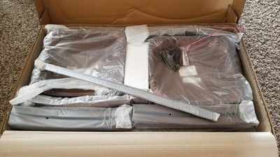 Ad said no assembly required. However they game in a million pieces and some of the screws were missing. Wood was scratched up and already cracked in one of the screw holes. Also, only half of the order was delivered even though FedEx states they delivered the entire order.