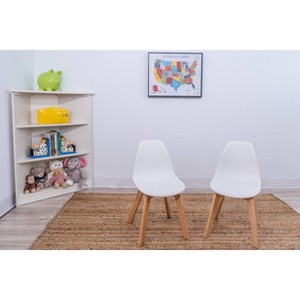 The Gift Mark Modern Childrens Chair Set, is sold as a set of 2 chairs in 5 different color variations. These chairs are very easy to assemble and all tools necessary for assembly are included within the package. These very easy to clean chairs are made with sturdy wooden legs. These kids chair sets, will fit perfectly in all types of room decor.