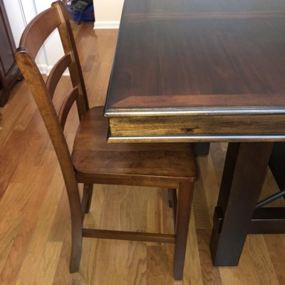 Difficult to find ladderback chairs with wooden seats (versus rush seats) so I got these. They work fine but the back legs curve outward farther than the top of the chair does, so I am always stubbing my toes on the back legs because I think the chair is further in than it is.