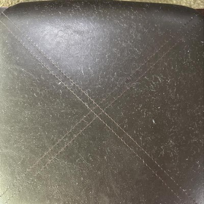 One stool came with a hole in the leather cushion, but we had already built it before we noticed, and just after using the stools for a couple weeks the top is peeling off and the stuffing is starting to come thru.