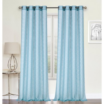 Set of 2 Leeds Floral Leaves Embossed Light Filtering Grommet Top Window Curtain Panels - Kate Aurora - Silver/Gray