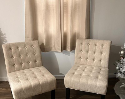 CONTEMPORARY: Our slipper chair set has the look, feel, and design of contemporary style with its button-tufted waffle stitching and tapered legs. With a classy and functional design, each chair will give your room an instant upgrade in style and comfort.