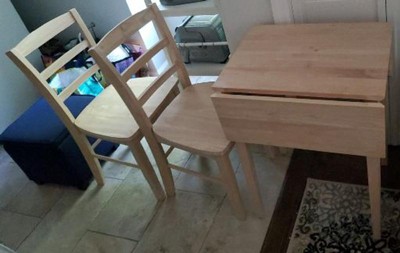 Arrived well-packaged, no flaws, easy to assemble, and I love the natural/unfinished color. I just wish they fit under the Tate dropleaf table (by this same manufacturer) a bit better to conserve more space in our small kitchen.