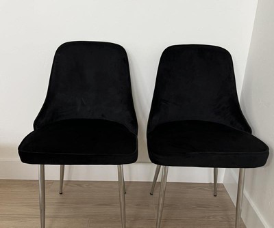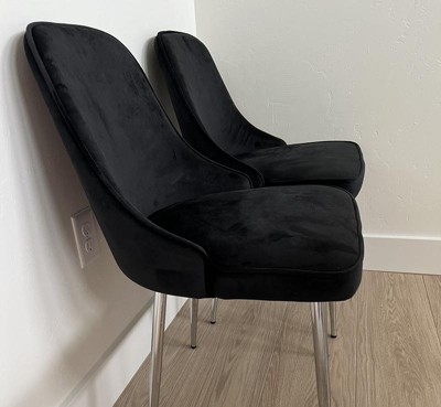 Graceful glam… that's the Marcel Dining Chair from LumiSource. With its subtly curved silhouette, rich velvet upholstery, and alluring metal legs, this chair will add striking style to any dining or seating area. Available in various fabric and leg options. Sold in a set of two. Sold as a set of 2.