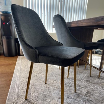 Graceful glam… that's the Marcel Dining Chair from LumiSource. With its subtly curved silhouette, rich velvet upholstery, and alluring metal legs, this chair will add striking style to any dining or seating area. Available in various fabric and leg options. Sold in a set of two. Sold as a set of 2.