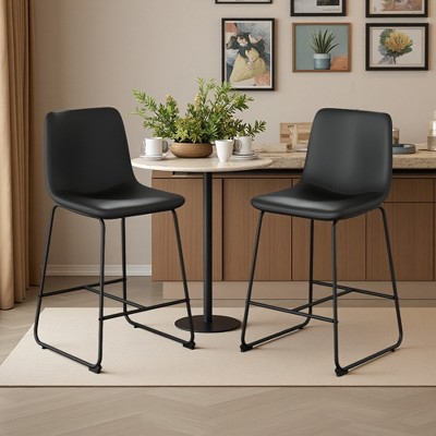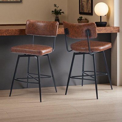 Set of 2 Modern Adjustable Swivel Bar Stools with Backrest, Faux Leather Counter Chairs for Kitchen Island, Dining Room or Living Area